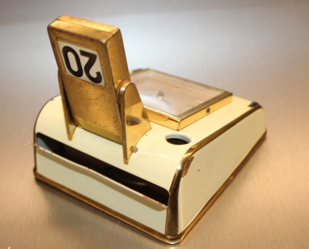 Pour le bureau . Un seul regard : la date , l’heure . Un seul geste : le crayon , la note . Le cadeau idéal pour mariage, noces d’or, jubilé, remise de décorations etc…: un JAZ DE LUXE! La dénomination TAGIC sera réattribuée en 1983 .