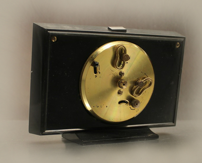 REPIC , réveil de la gamme des Stylites , sonnerie à répétition , mouvement mécanique , calibre 3DV . Nouveauté du catalogue 1969/70 à la page 13 . Corps en plastique sur socle , référencé 1304-61 dans cette version rouge , cadran « argent » brossé, garnitures façon or , n’existe qu’avec des chiffres romains .