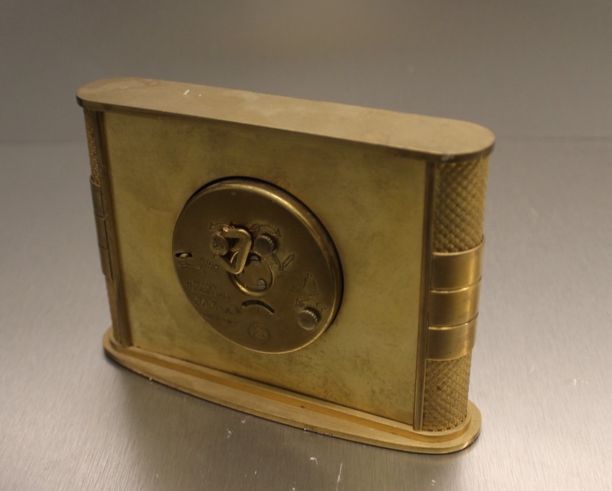 BINIC , réveil , gamme Jaz de Luxe , mouvement mécanique , calibre 1AF , autonomie 8 jours , 11 jewels ou 11 pierres, une seule clé pour le mouvement et la sonnerie . Nouveauté du catalogue 1959/60 à la page 4 , référencée 812-13 . Boîtier en laiton massif , cadran argenté mat , quatre chiffres métal en relief , aiguilles dauphines , aiguilles et huit points lumineux . Format 13,5 x 9 cm , poids 625 gr . Le BINIC est encore au catalogue 1960/61 mais il n’est déjà plus présent dans celui de 1961/62 soit deux années d’existence seulement . Le nom de BINIC sera réattribué en 1977 à un réveil .