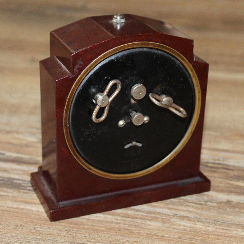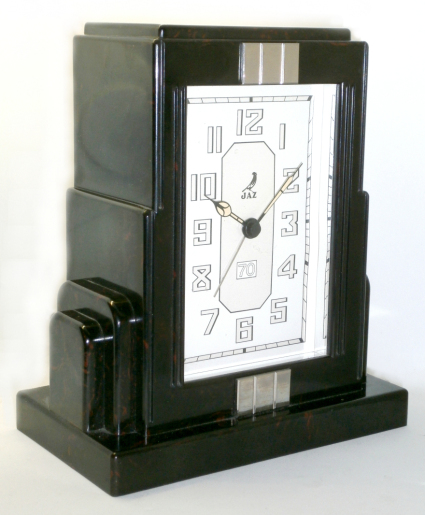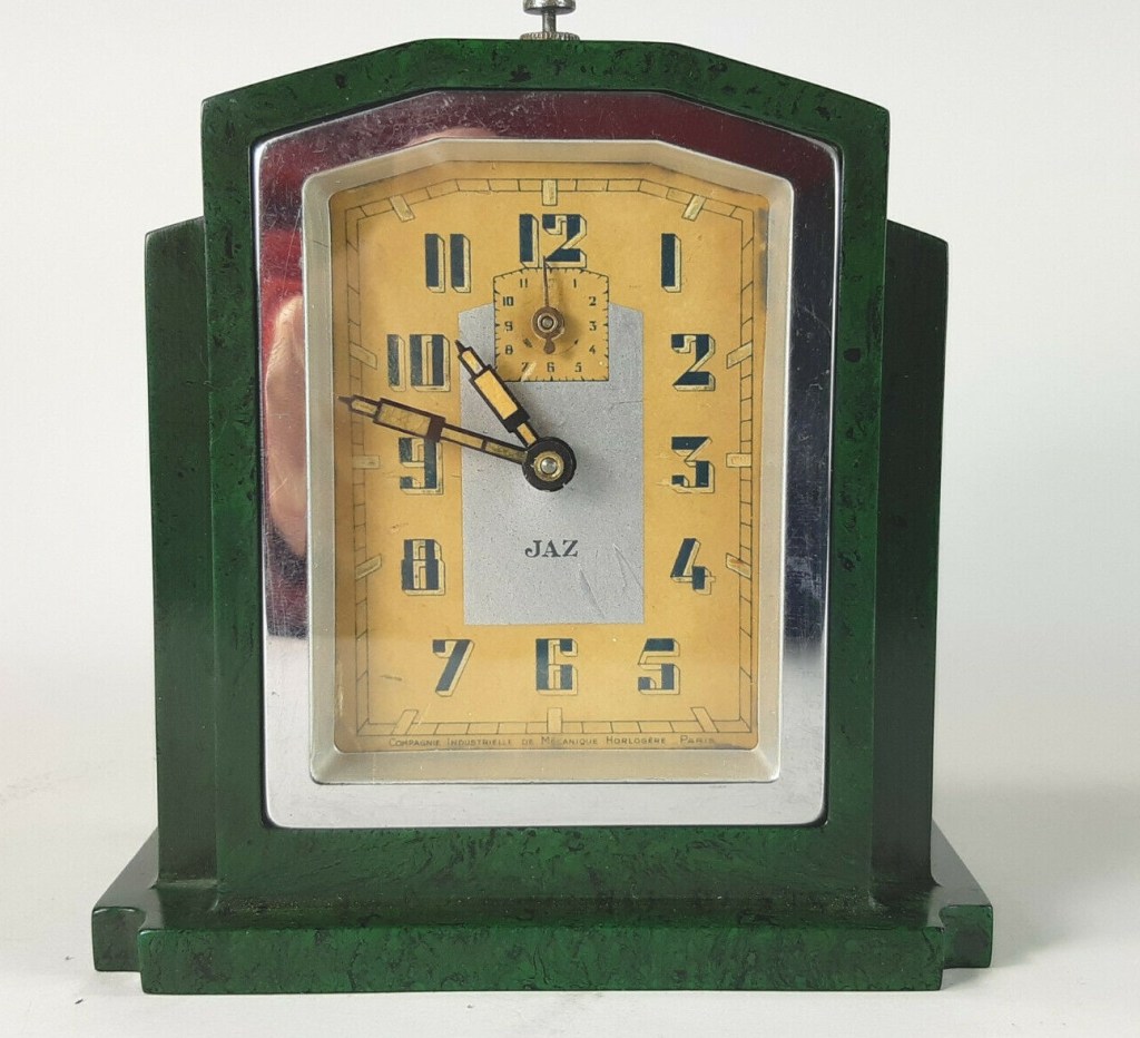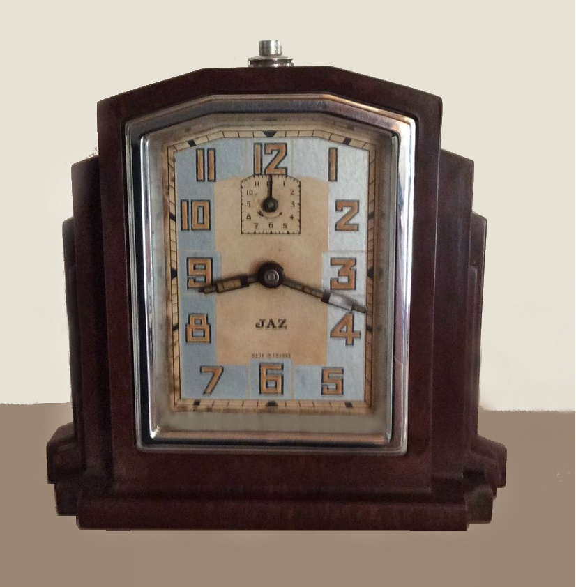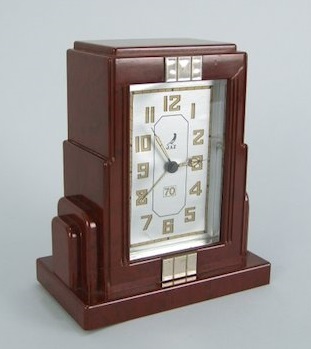FONIC , réveil , gamme des Pendulites , mouvement mécanique , calibre 1D , 30 heures d’autonomie . Corps tout en Jazolite , aiguilles « buildings » , cadran en carton , partie centrale argentée , aiguilles chiffres et index lumineux . Format 12 x 12 cm , poids 540 gr . Au tarif F97 de 1933 le FONIC est proposé en trois couleurs : ronce de Thuya , marbré rouge-rubis ou marbré vert jade . En 1936 le FONIC n’est plus disponible qu’en rouge sous le numéro 403 ou en imitation thuya numéroté 407 . Le FONIC apparaît encore dans le catalogue 1937 à la page 12 , référencé 409 , en Jazolite écaille ton sur ton , seule couleur désormais disponible .