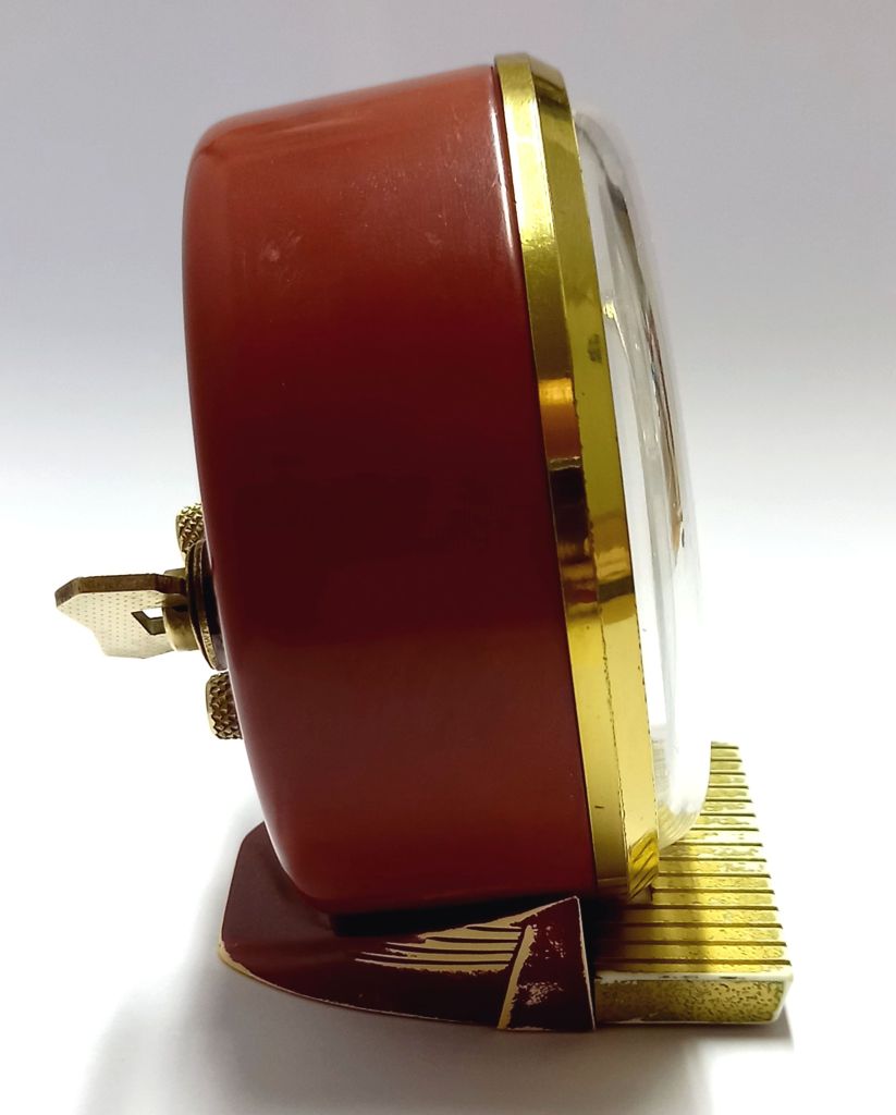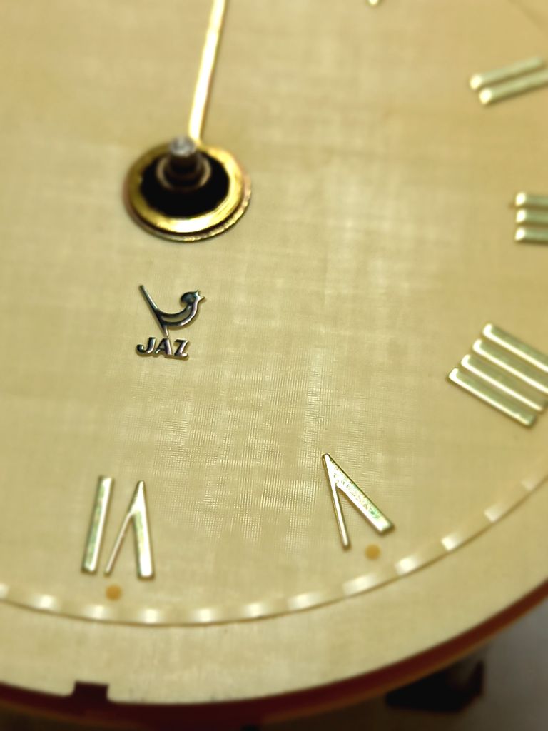 PIANIC , réveil gamme des « Gros Jaz », mouvement mécanique , calibre PA . Nouveauté du catalogue 1968/69 à la page 31 . Son nom est motivé par le petit socle en forme de clavier de piano devant le cadran qui sert d’arrêt de sonnerie , cette particularité pourtant astucieuse restera l’apanage exclusif du PIANIC . Corps en métal laqué , garnitures ton « or » finition diamant , chiffres romains , aiguilles et points lumineux . Diamètre 8,7 cm, poids 280 gr . Il est présent pour la dernière fois à la page 29 du catalogue 1970/71 .