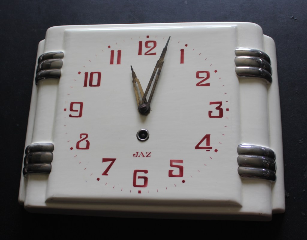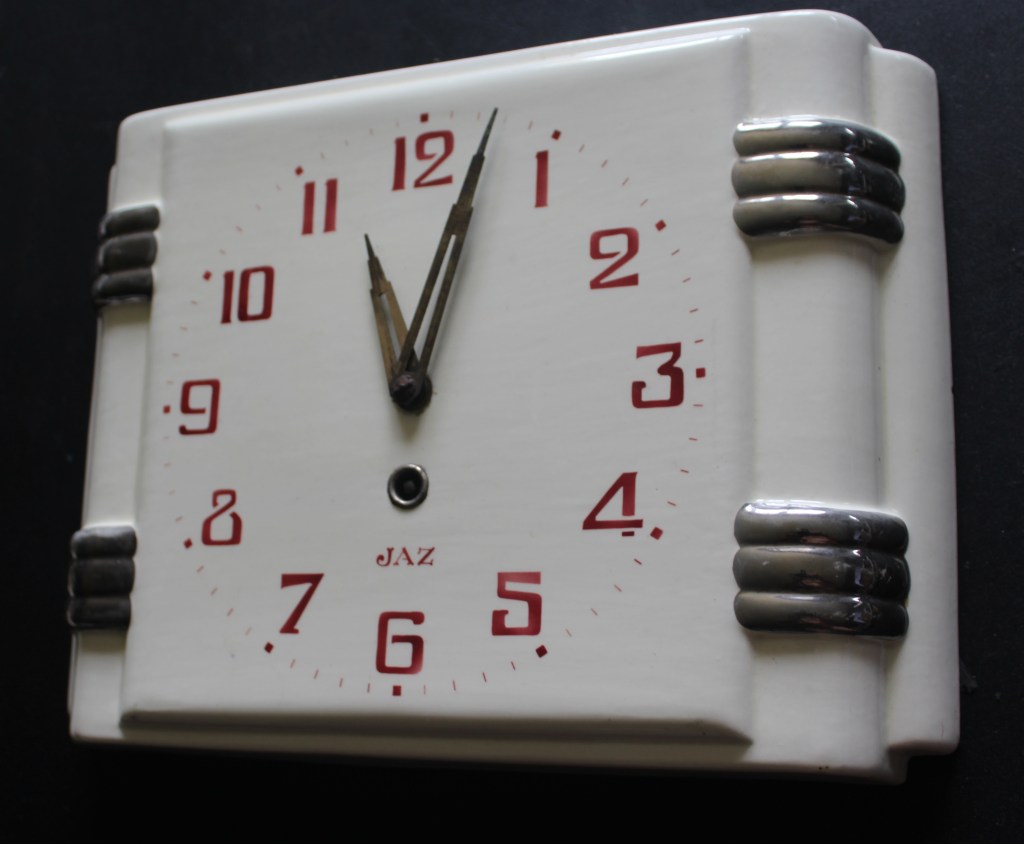 La particularité des horloges en céramique Jaz est l’absence totale de vis de fixation dans le cadran grâce à un système exclusif de maintien par un œillet autour de l’orifice d’entrée de la clé . La concurrence affichait au moins deux , trois voire quatre têtes de vis pour le moins voyantes et disgracieuses sur ses cadrans .