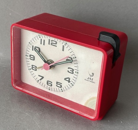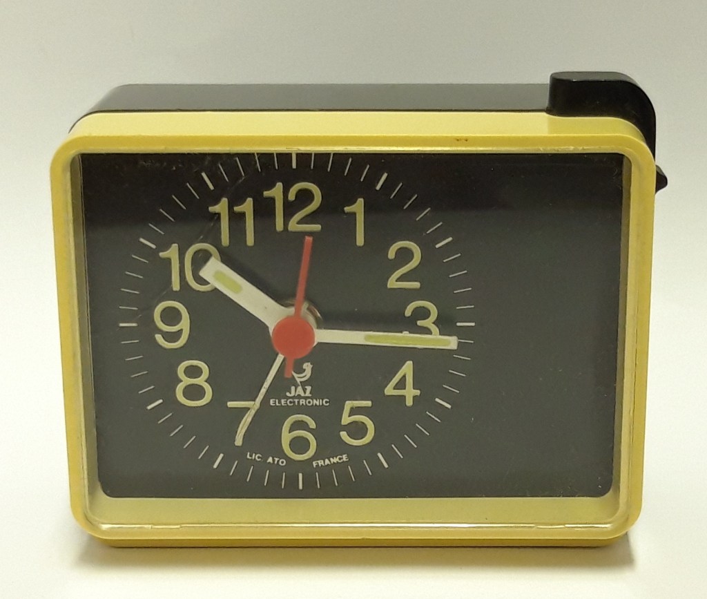 PETIC , petit réveil , Jaz Electronic , mouvement à pile LR6 , calibre TR , licence ATO . Nouveauté du catalogue 1977 à la page 6 . Corps en plastique , réveil moduleur buzzer , tic-tac discret , aiguilles et points lumineux .