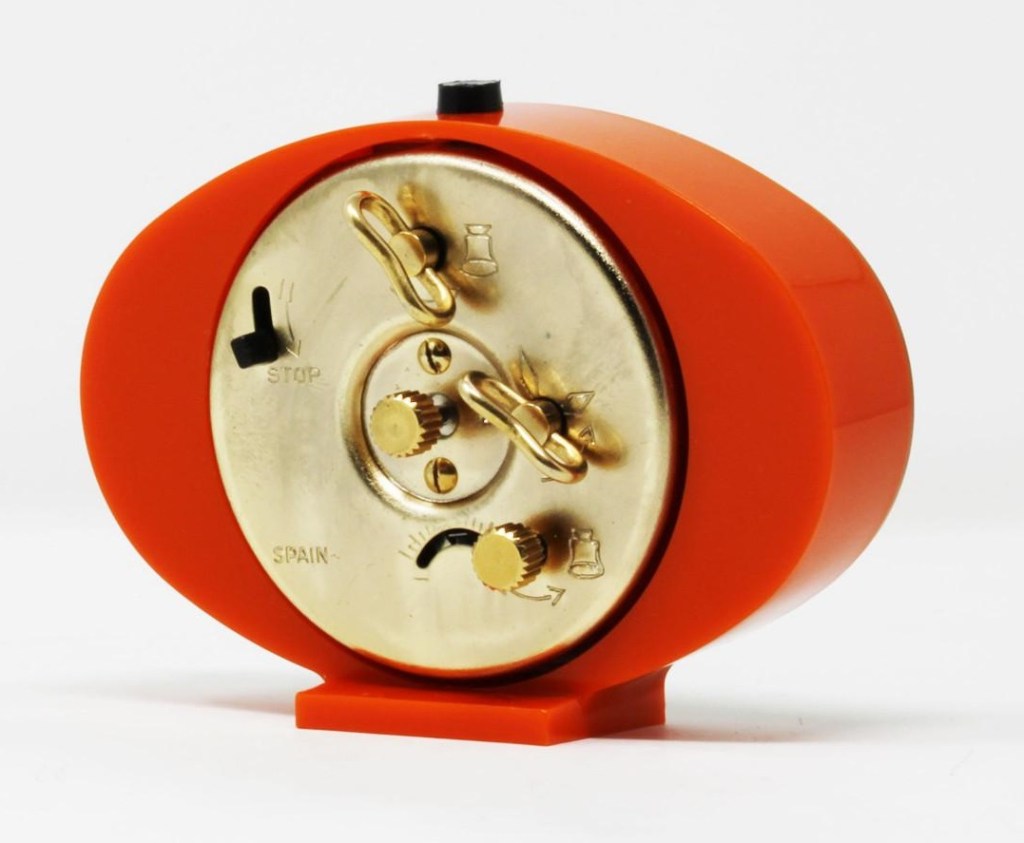 LIPSIC 1339-11 façade grise /zone des heures orange et corps blanc Il n’est plus disponible en 1978 . Son nom de LIPSIC trouve son origine dans sa forme ovale de bouche ouverte dont la façade métallique sont les lèvres -lips en anglais- , décliné en PILSIC , son anagramme , il désigne un réveil dont il partage silhouette et calibre mais au cadran plus traditionnel . La dénomination LIPSIC sera réattribuée en 1982 à une horloge murale ovale .