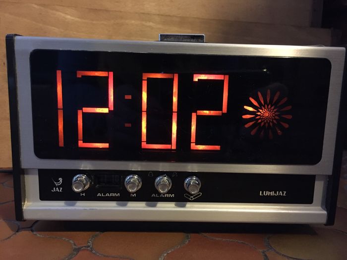 LUTIC , grand réveil électrique synchrone , gamme Lumijaz , mouvement électrique sur secteur 220 volts ( ATTENTION existe en 120 volts) , calibre ET . Nouveauté du catalogue 1975 à la page 9 , référencée 3321-10 . Boîtier alu brossé , mention LUMIJAZ et chiffres lumineux . Format 20,5 x 12,5 x 7 cm poids 800 gr avec le câble. Le LUTIC n’est disponible qu’en 1975 . La catégorie LUMIJAZ ne comprend que trois réveils : VOUDIC , NUMIC et LUTIC ;
