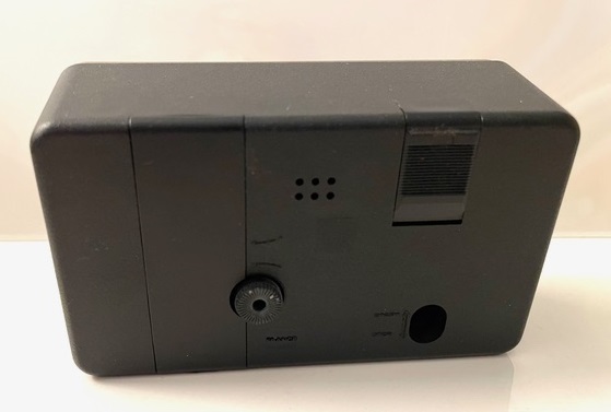 DERPIC , réveil , Jaz Quartz , sonnerie cadencée -répétition- moduleur et tic-tac discret , mouvement à pile LR6 , calibre 2RK . Nouveauté du catalogue 1980 à la page 4 . Dimensions 10,5 x 6 cm . Corps en plastique , arrêt de sonnerie au sommet , façade façon or , cadran métal , trotteuse centrale , chiffres et points lumineux . Deux versions sont disponibles en 1980 : noir , réf. 8034-31 et rouge 8034-71 .Ce cadran très particulier , scindé en trois parties , avait été employé pour les STANDIC .
