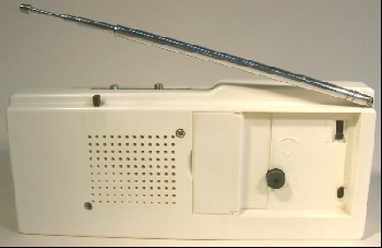 GAMIC 5001-11 blanc Existe en deux couleurs : blanc réf.5001-11 ou noir réf. 5001-61 . Format 19,5 x 8,5 x 4 cm , poids 450 gr . Type radio-réveil à quatre semi-conducteurs , quatre transistors silicium + CI. Ferrite + antenne télesc.type de montage superhétérodyne , deux gammes GO Grandes Ondes et MF Modulation de Fréquence .