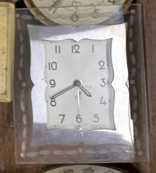 GRAVIC , petit réveil , gamme des Stylites , mouvement mécanique , calibre 1J . Présent au tarif 1943 , référencé 491-10 . Boîtier en plexiglas gravé , non-lumineux . Format 10 x 12 cm . Production de guerre sous régime de restrictions strictes des métaux , le GRAVIC fait appel au Plexiglas qui n’est pas contingenté par l’occupant , comme ses contemporains le DAMIC et le GRADIC qui sont en bois laqué et frêne verni . Même souci de pénurie dans ce catalogue 1943 pour les MARBRIC et TORIC qui sont en pierre tout autant que les DANSIC conçus en verre . Sa dénomination prend son origine dans la gravure du plexiglas .