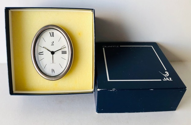 RUBIC , petit réveil , gamme Jaz Quartz , mouvement électrique à pile SR44 , calibre RQK à quartz , extra plat . Nouveauté du catalogue 1982-83 à la page 2 , référencée 8088-21 . Boîtier ovale couleur gris fusil , cadran blanc , chevalet , quatre chiffres cardinaux romains . Format 6,4 x 8,6 cm, poids 95 gr . Il n’est plus disponible en 1984 . La dénomination RUBIC avait déjà été attribuée en 1949 et 1970 .Ce modèle réapparaît dans le catalogue 1986 page 18 sous la réf: 5265