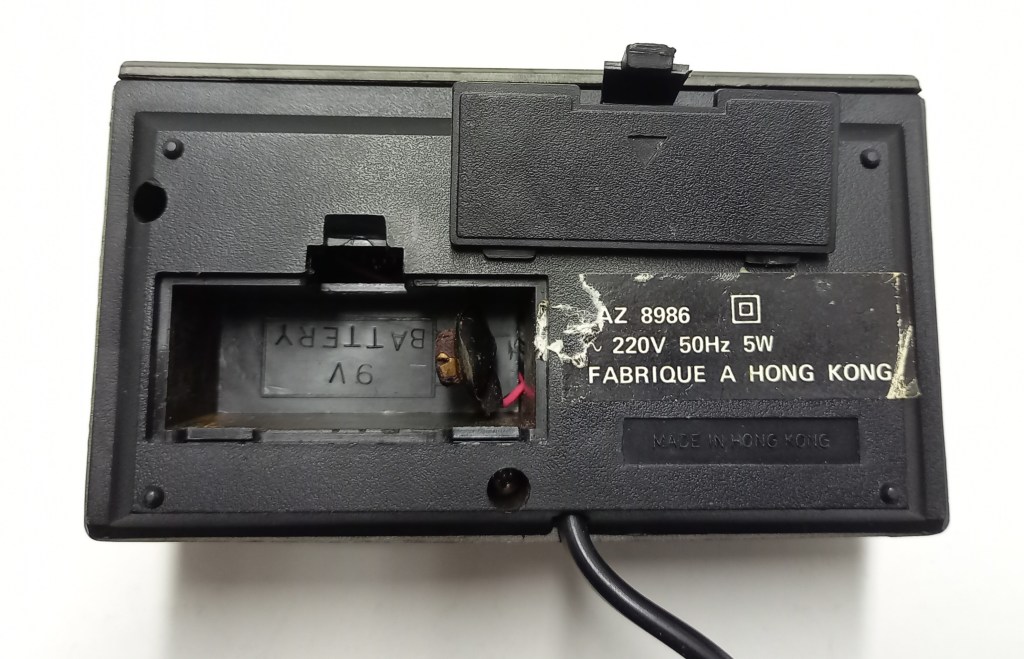 COSMIC , réveil électrique , numérique sur secteur 220 volts avec réserve de marche sur pile 9 volts . Nouveauté du catalogue 1983 , référencée 8986-21 . Boîtier en plastique couleur gris « fusil », affichage LED vertes , réserve de marche. Dimensions 12,7 x 7,3 x 4,4 cm . Made in Hong Kong