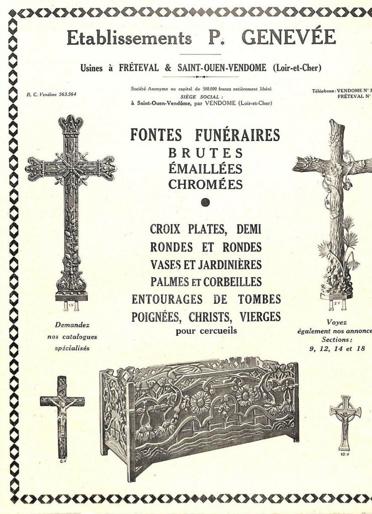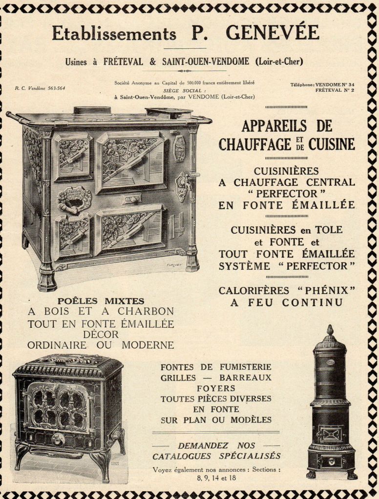 Si l’on en croit la couverture de ce catalogue Pierre GENEVÉE , il faudrait faire remonter la fondation de ses établissements à 1530 : ce n’est pas franchement mensonger , mais c’est pour le moins exagéré . Les deux usines de Saint Ouen -Vendôme et de Fréteval sont à dix kilomètres l’une de l’autre , tout proche de Vendôme , sous préfecture de Loir et Cher