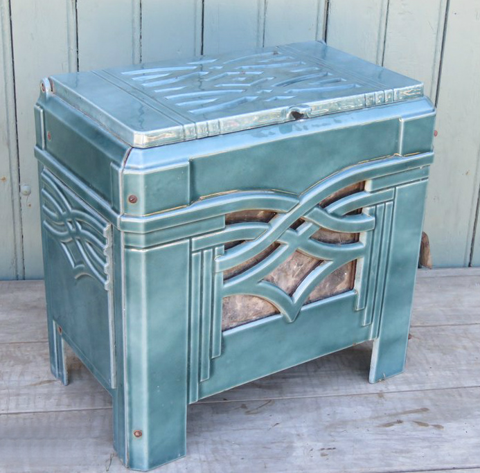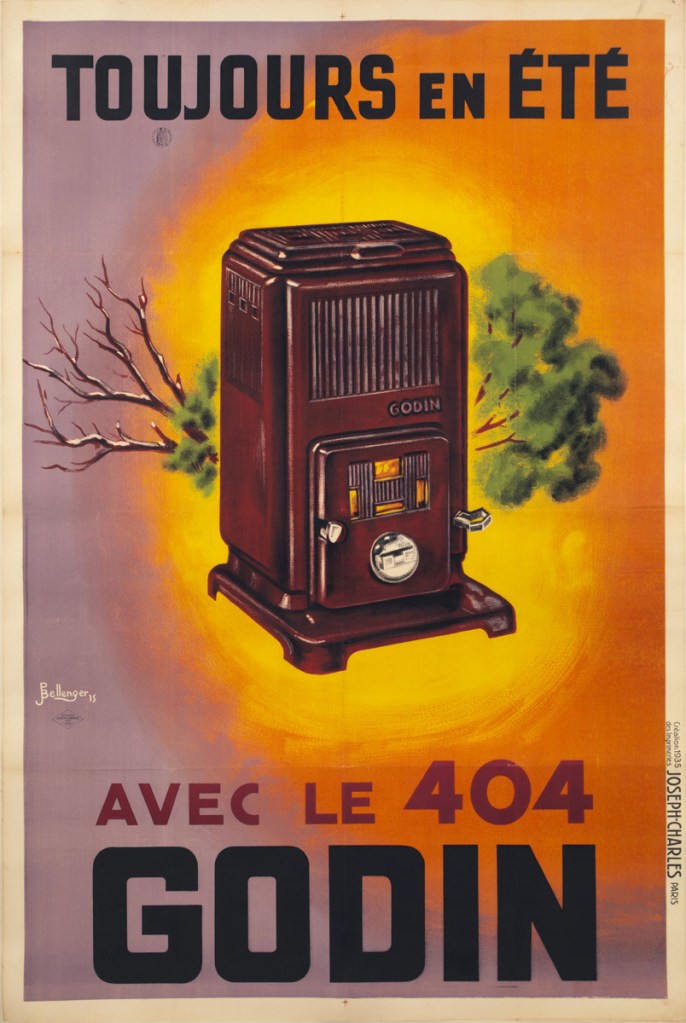 Extrait du catalogue Pierre Genevée et un de ses superbes poêles émaillés Art Déco