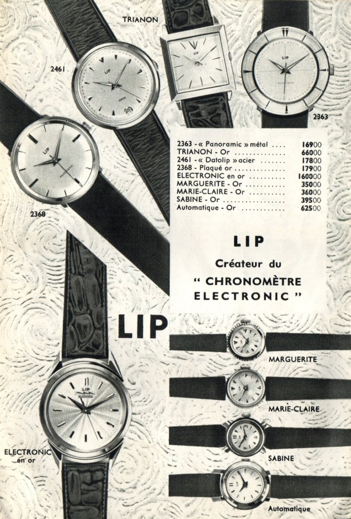 Le choix dans ce type de catalogue porte souvent sur LIP pour les montres de prestige.