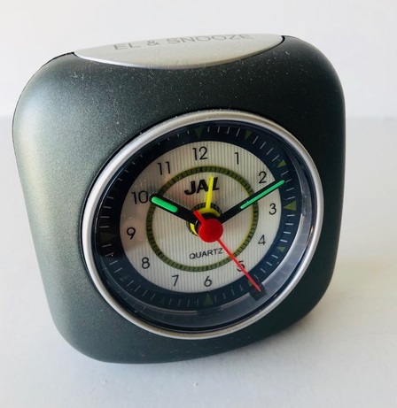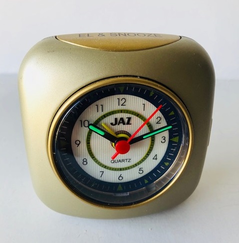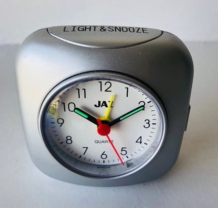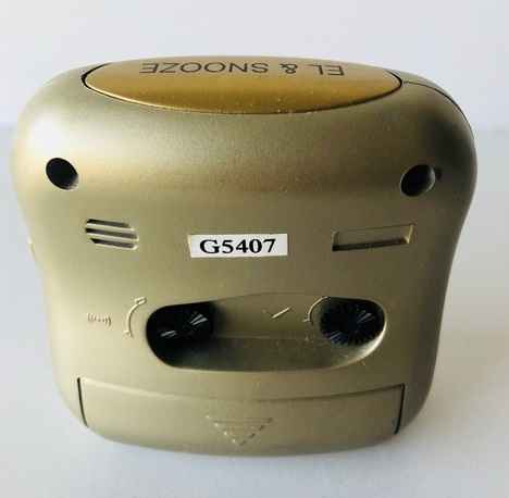 5406 / 5407 / 5408 réveils quartz, corps en plastique gris anthracite pour la réf: 5406, vert d’eau pour la réf: 5407 et gris souris pour la réf: 5408 , aiguilles lumineuses, trotteuse centrale rouge, arrêt de sonnerie et éclairage du cadran au sommet .Dim: 7,5 x 7,5 x 3 cm. Poids: 66 gr sans la pile LR6, circa 1999