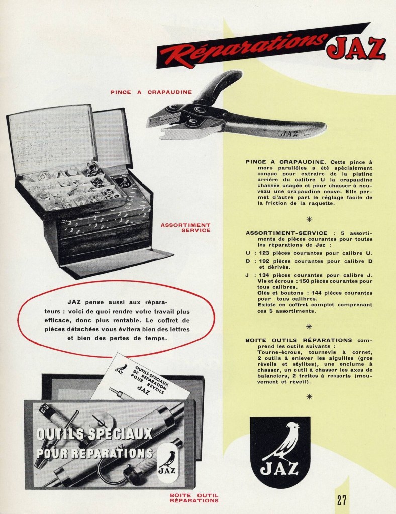 Ce calibre AB représente une telle innovation avec sa sonnerie limitable – toujours transcrite sous cette forme insistante li-mi-ta-ble – que Jaz fait sa publicité en représentant avec audace et pédagogie le dos , et lui seul , de leurs nouveaux réveils , originalité sans doute unique dans le monde de l’horlogerie !