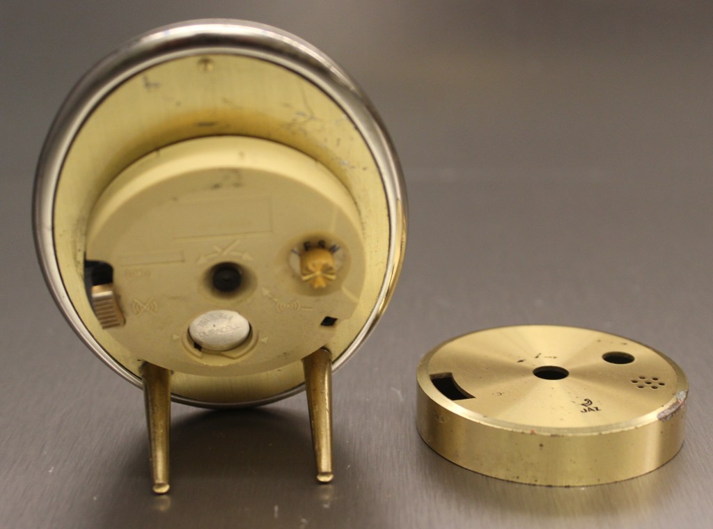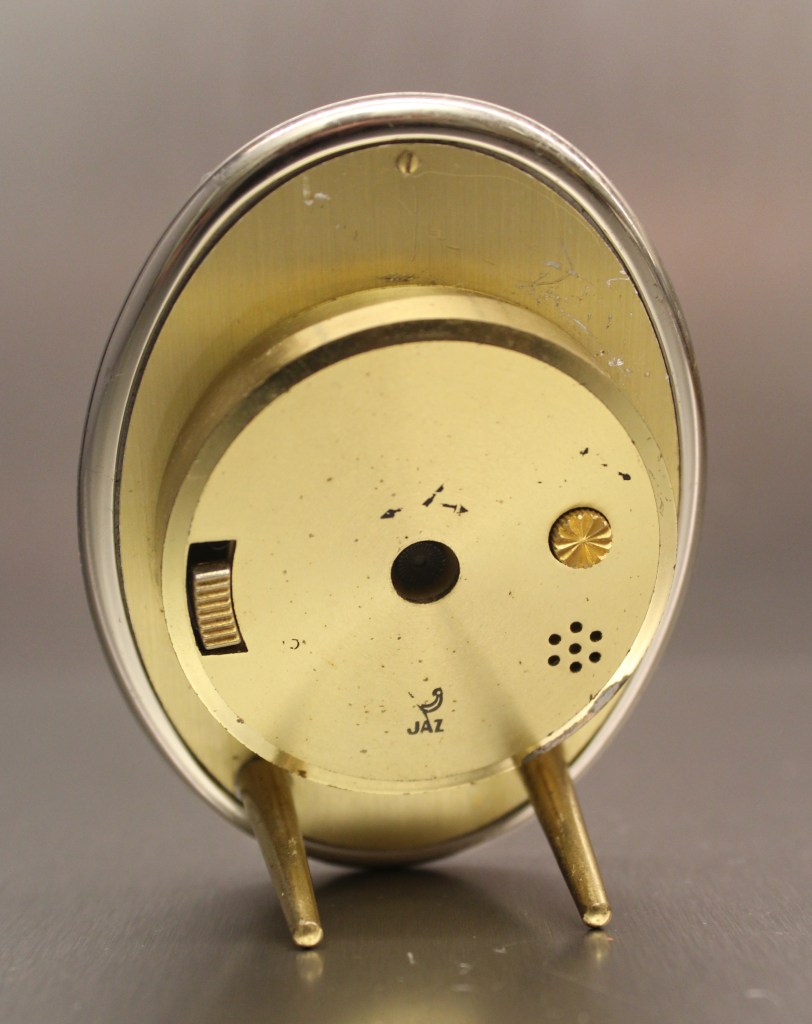 DADIC moto , réveil animé , mouvement mécanique , calibre PA . Nouveauté du catalogue 1983 à la page 4 , référencée 1257-71 . Corps en métal orange, arrêt de sonnerie sous la bélière , vitre en verre plat , aiguilles blanches , aiguilles lumineuses , animation : le drapeau oscille en permanence . Diamètre 10,8 cm . Les DADIC sont apparus en 1976 avec tout d’abord les modèles clown et moto , subissant quelques évolutions esthétiques au cours des années . En 1983 apparaissent quatre versions supplémentaires: le Chat -Souris , le Football , Far-West et Princesse aux Colombes . Le DADIC moto est plus disponible jusqu’au catalogue 1985 page 38 où il change de réf pour prendre la réf: 2429