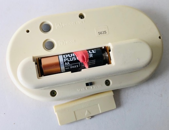 5635 réveil numérique. circa 1991 à 1994 où l’on trouve ce design pour le logo. Dimension: 16 x 8,5 x 5 cm pile: LR6, poids: 233 gr.