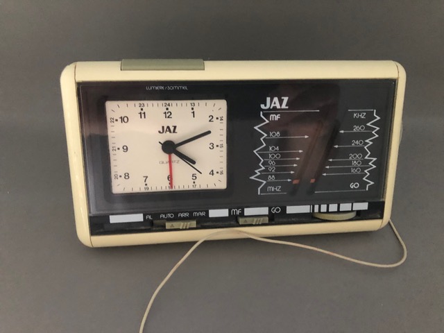 8009/8010 radio réveil GO/FM , corps en plastique noir, mouvement quartz , trotteuse centrale , nouveauté du catalogue 1991 page 12, disponible jusqu’en 1994. Format 17,4 x 9,5 x 9 cm Pile: LR6 Poids: 371 gr. Made in China
