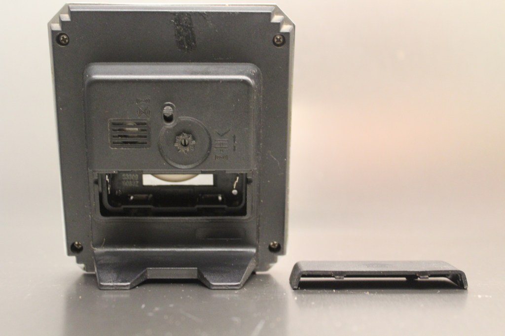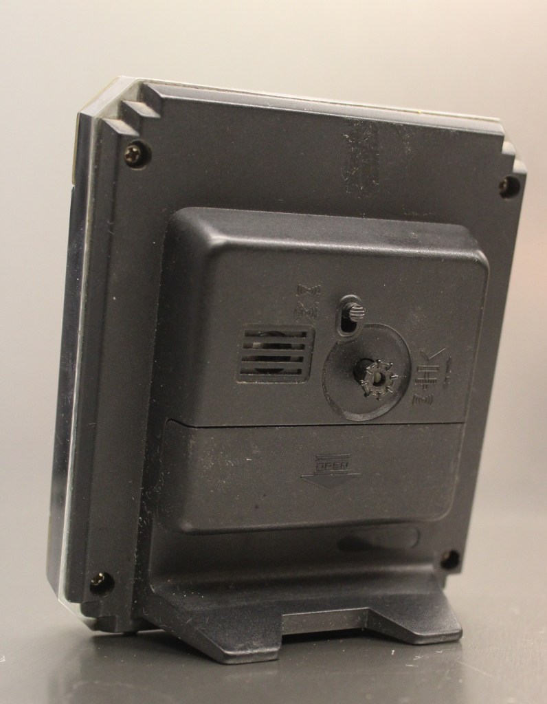 4424/4425/4426 , réveil , gamme Jaz Quartz , corps en plastique gris , lunette et dos rouge , orientable /inclinable , mouvement quartz à pile LR6 , aiguilles noires en plastique , aiguilles et chiffres lumineux , trotteuse centrale noire , chemin de fer allégé numéroté jusqu’à 60 , format 11 x 11 x 5,6 cm , poids 220 gr sans la pile , présent uniquement au catalogue 1991/1992 page 8 . Existe en blanc réf. 4424 , gris réf. 4426 et en noir réf. 4425 .