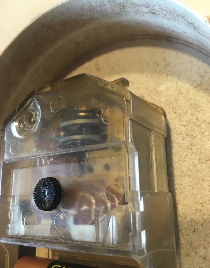 Calibre TM et vibreur VE par Jaz; les masses métalliques coniques à droite et à gauche sont juste destinées à assurer la stabilité du réveil.