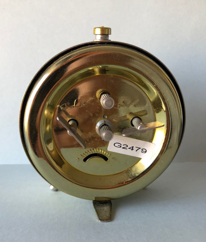 Cet exemplaire, à corps et cadran noir, a été mis en vente aux enchères, samedi 11 mai 2019, chez Salorges Enchères. Au catalogue, le commissaire – priseur indiquait que le réveil était en plastique noir.