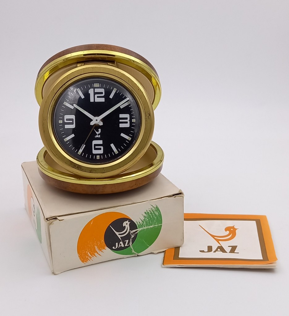 Réservée à l’exportation. Référencée 6306-42 pour la version noire, 6306-52 pour la bleue et 6306-62 pour la rouge dans le catalogues Jaz Export de 1976 à la page 44 , il n’est plus au catalogue en 1977. Corps en matière plastique , aiguilles blanches , trotteuse centrale à talon rectangulaire . Diamètre 23 cm .