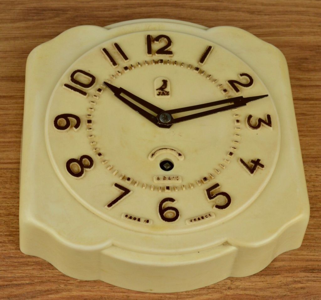 Ces pendules à poser en bakélite obtinrent de beaux succès à l’export aux USA et en Grande Bretagne particulièrement .