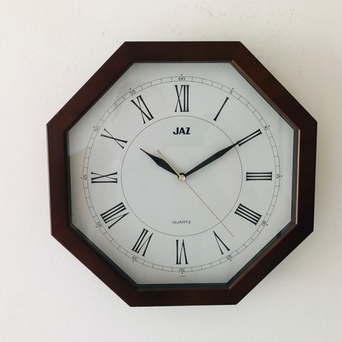 6103 horloge gamme Jaz Quartz , mouvement quartz à pile LR6, corps octogonal en bois laqué noir et doré , chemin de fer octogonal au pourtour du cadran, nouveauté dans le supplément du catalogue 1989 et l’année suivante en 1990 dans « Les Classiques ». Format 30 x 30 cm . existe en version carré référencée 6102.