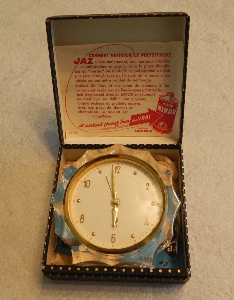 …mais le cache poussière est daté au tampon encreur rouge 10 62 pour Octobre 1962 ; Sachant que les calibres 5AF n’apparaissent en France qu’en 1964 /1965 , cela nous oriente vers l’hypothèse d’un modèle réservé à l’export puisqu’il n’apparaît dans aucun catalogue , ni tarif . Jaz avait l’habitude de tester à l’étranger ces nouveaux modèles , pas toujours suivis d’une diffusion en France métropolitaine . Voir notre rubrique en attente d’identification .