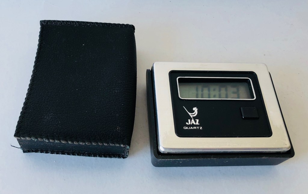 PHOTIC , réveil de la gamme JAZ Quartz , mouvement à deux piles bouton LR44 , calibre LCD affichage à cristaux liquides sur 24 heures . Nouveauté du catalogue 1980 à la page 5 .