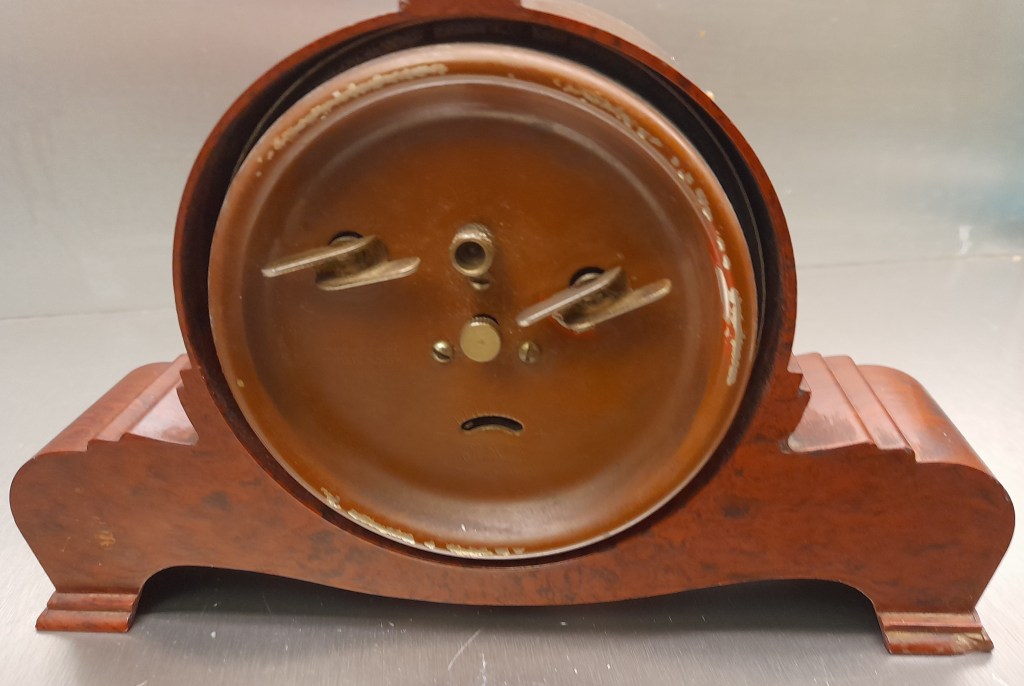LOTIC 1940 lumineuxcadran non-lumineux Existe en deux couleurs : noyer et thuya , référencées 434 et 436 , pour les versions à cadran non lumineux et 435 et 437 pour les modèles à aiguilles et points ou chiffres lumineux .Le marteau de ce LOTIC est daté 2-40 pour 2° trimestre 1940 ce qui en fait probablement la dernière version puisqu’il n’y en a plus au catalogue de 1942 . Les cadrans des précédents modèles étaient en carton , celui-ci est en métal .