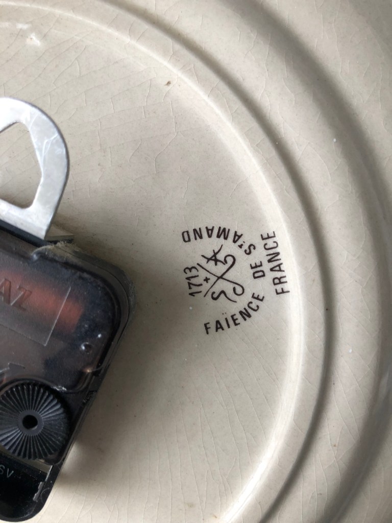 NEPTIC , horloge murale , forme assiette en faïence , mouvement mécanique à clé amovible ,
