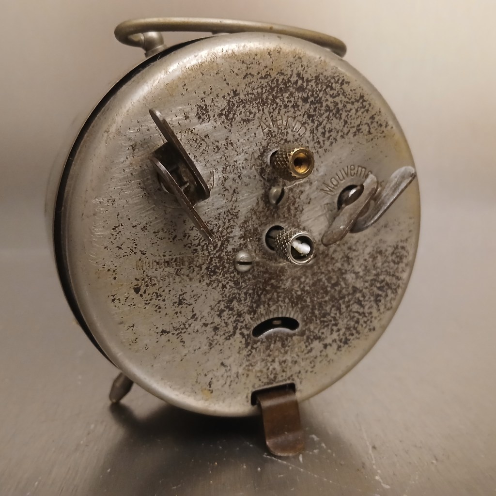 MIDIC , grand réveil à mouvement mécanique courant , calibre 1D . Présent uniquement aux tarifs d’Octobre 1946 et Mars 1947 . Boîtier nickelé et lunette en métal poli , cadran métal satiné , avec bélière basse , aiguilles alphas . Diamètre 9,5 cm . Référencé 111-22 pour la version non-lumineuse et 111-23 pour la version à aiguilles et chiffres lumineux . La dénomination MIDIC sera réattribué en 1979 .midic 46MIDIC 111-22