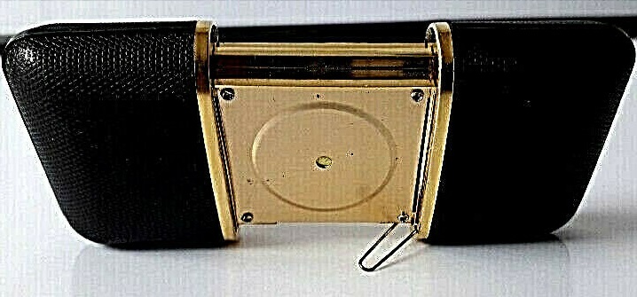 Cette vue de dos nous montre la fenêtre , ici obturée , qui permet d’afficher un dateur à date et jour . Effectivement , son modèle d’origine est la RANDIC à dateur , laquelle apparaît elle aussi en 1979 . Cette CORONET et la NANRIC sont en fait des versions sans dateur de la RANDIC . La CORONET est donc un hybride des deux JAZ , reprenant le cadran doré de la RANDIC , mais n’ayant pas de dateur comme la NANRIC .