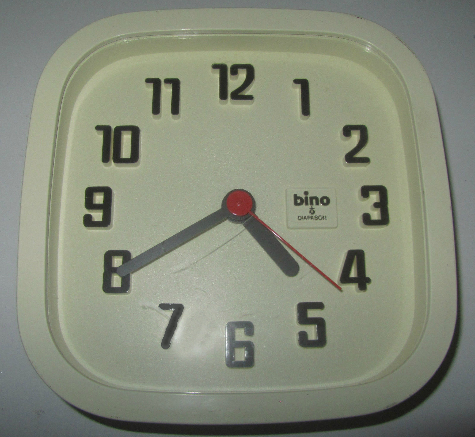 Nouveauté du catalogue 1982-83 à la page 9 , réf. 8124-61 pour le modèle noir à cadran noir et rouge et 8124-91 pour le modèle noir à cadran blanc et vert . Boîtier en plastique, cadran quadrillé, aiguilles et points