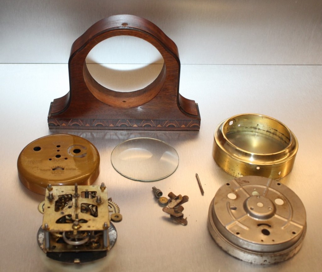 Pendant la guerre le laiton des platines et rouages est remplacé par des alliages dit » blancs » comme pour ce CARRIC de 1945 . Un exemplaire de calibre est le porte -bonheur de Jean-Luc Mélenchon , voir notre article .