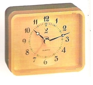 DERPIC , réveil , Jaz Quartz , sonnerie cadencée -répétition- moduleur et tic-tac discret , mouvement à pile LR6 , calibre 2RK . Nouveauté du catalogue 1980 à la page 4 . Dimensions 10,5 x 6 cm . Corps en plastique , arrêt de sonnerie au sommet , façade façon or , cadran métal , trotteuse centrale , chiffres et points lumineux . Deux versions sont disponibles en 1980 : noir , réf. 8034-31 et rouge 8034-71 .Ce cadran très particulier , scindé en trois parties , avait été employé pour les STANDIC .