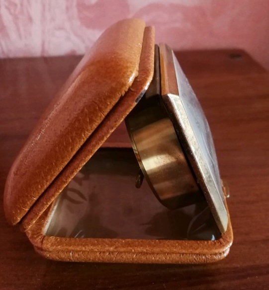 anatomie du MULIC : la vitre est en plexiglas , la lunette en plastique doré est habillée d’une plaque de laiton brossé .