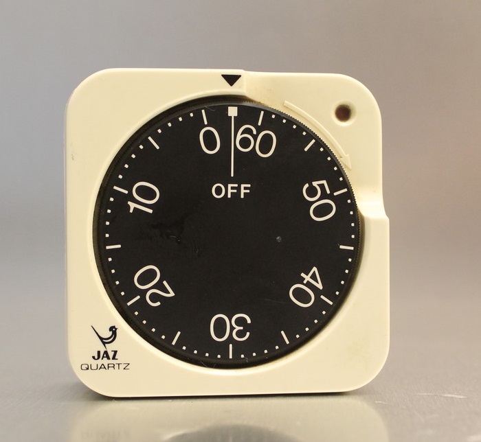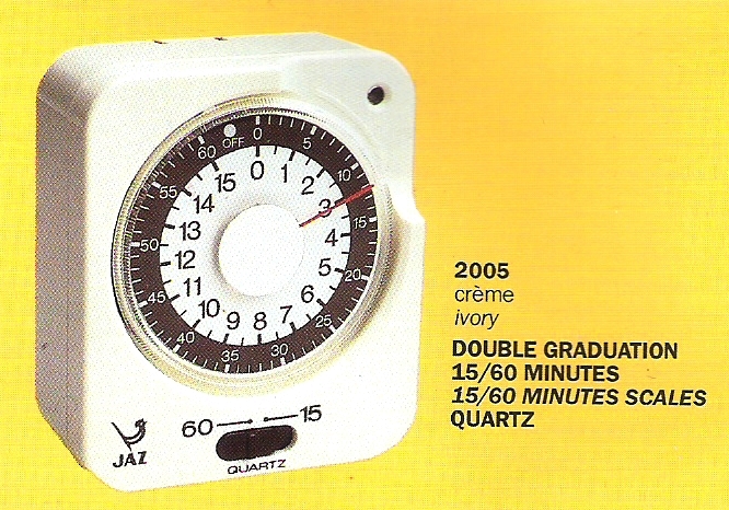 NUTIC , compte-minutes , minuteur à quartz , calibre CMK . Nouveauté du catalogue 1983 , référencée 92-10 . Boîtier plastique couleur crème, double graduation 60 ou 15 minutes. Référencé 2005 en 1985 , pour sa dernière année de mise en vente .