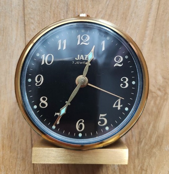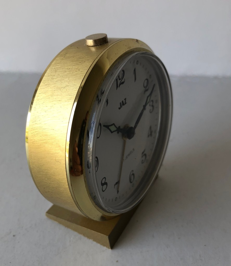 3039 petit réveil mécanique, calibre CS donc une seule clef de remontage, aiguilles noires, aiguilles et points lumineux, corps en laiton, nouveauté du catalogue 1991 disponible jusqu’ en 1995. Format 6 x 5,7 cm, poids: 94 gr.