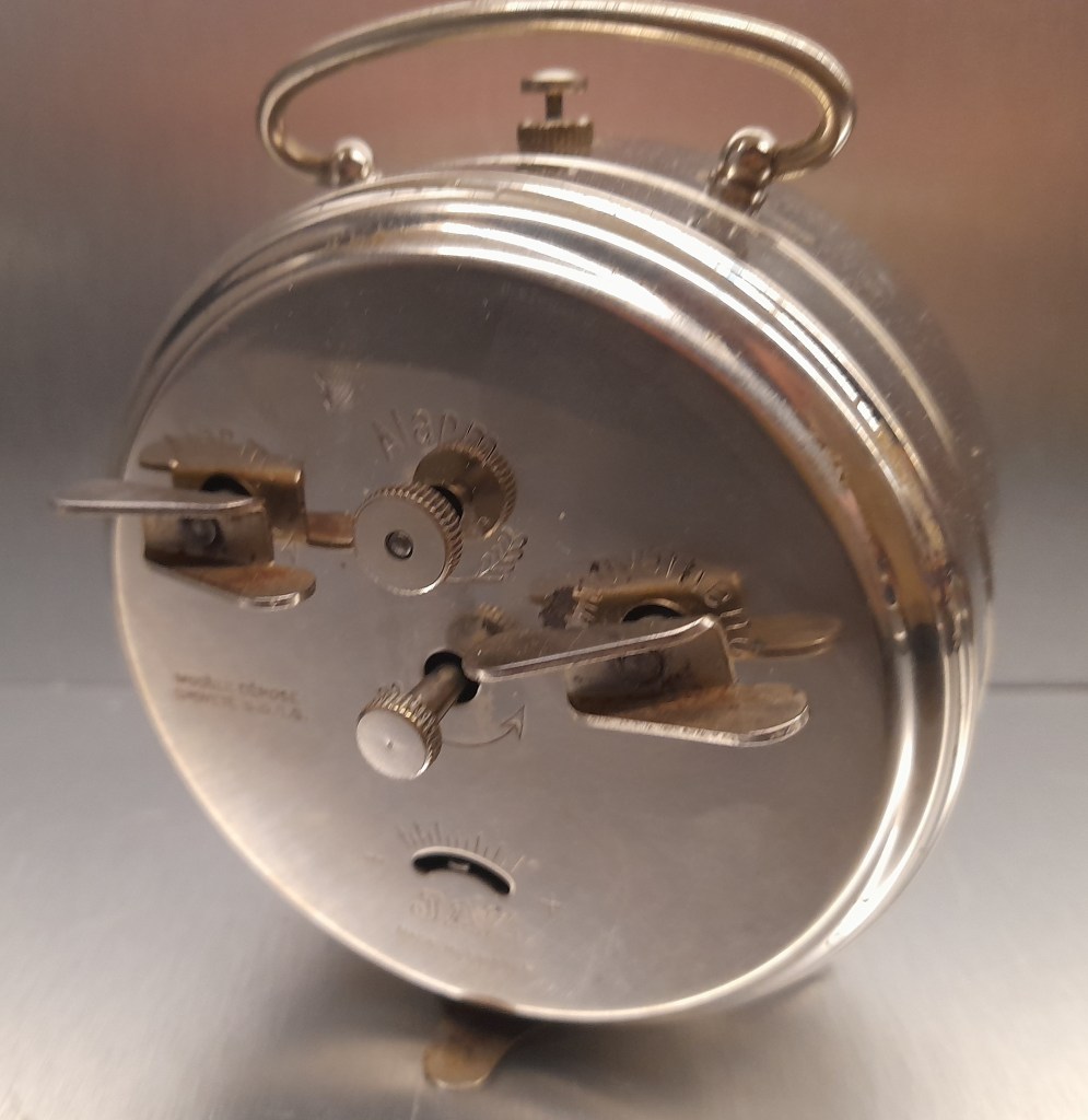 Mais la particularité du PUBLIC, par rapport aux autres réveils ronds de Jaz, apparaît en enlevant clefs et dos afin que l’absence de vis de fixation du dos devienne une évidence. Caractéristique de cette période , le dos du PUBLIC n’est pas vissé mais emboîté, on retrouve ces particularités avec le MARSIC qui lui succède en 1940, quasiment au même prix, lui aussi en entrée de gamme des gros réveils. Attention en introduisant un tournevis pour l’ouverture, le balancier n’est pas loin derrière.