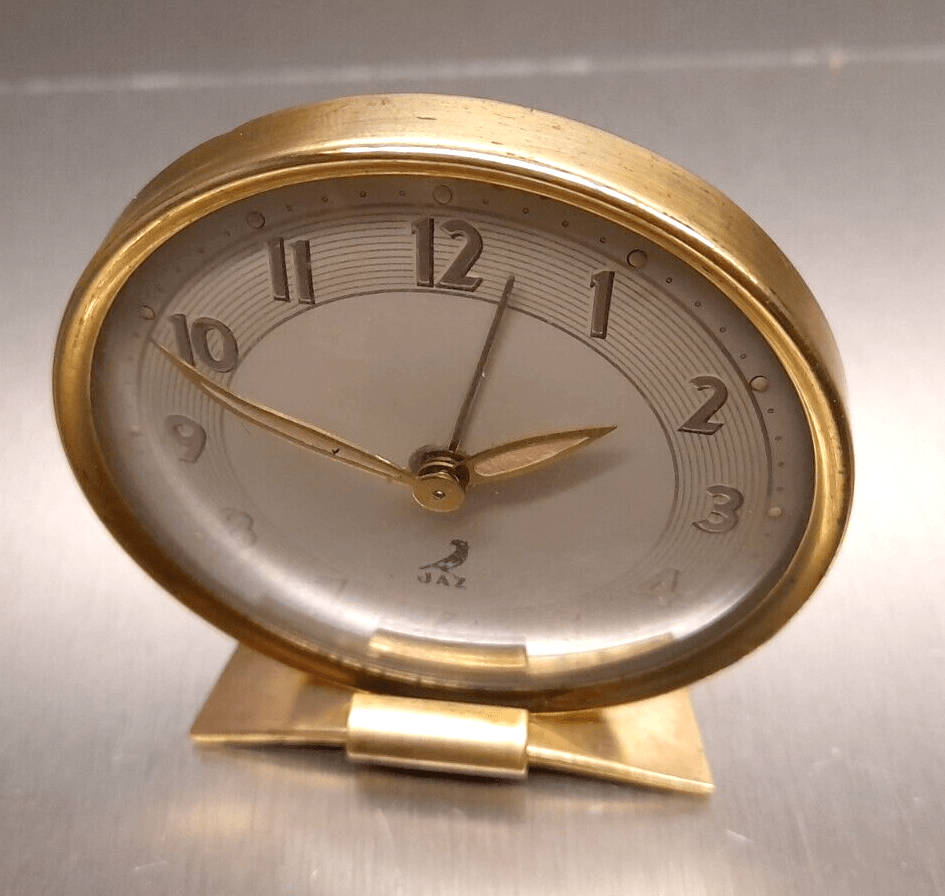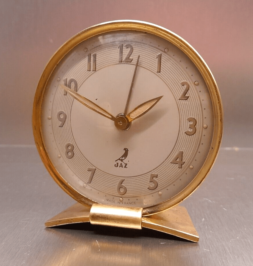 La variante en céramique verte étant abandonnée en 1956 , seule la version marron est encore disponible pour cette dernière présence au catalogue . Une horloge murale héritera du même nom de CERMIC en 1969 qui est , on ne peut plus , approprié pour une pièce en céramique . Inaltérable et facile à entretenir cette matière a été beaucoup employée pour des pendules murales , en revanche ce CERMIC est bien un des très rares réveils de toute la gamme Jaz à en être constitué .
