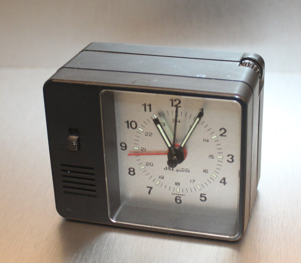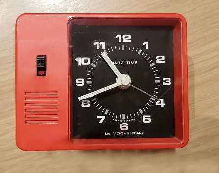 VEDIC 4549-71 VEDIC , petit réveil de la gamme Jaz Quartz , mouvement électrique à pile LR14 , calibre WK , made in Germany . Nouveauté du catalogue 1977 à la page 2 . Boîtier en plastique , trotteuse centrale .