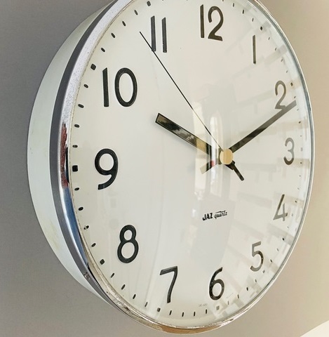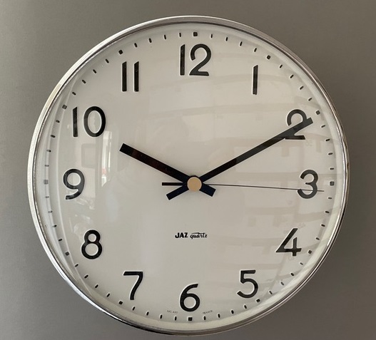 PUBLIC , pendule murale de la gamme Jaz Quartz , mouvement électrique à pile LR14  , calibre TMK , licence ATO . Nouveauté du catalogue 1975 à la page 3 , référencée 4199-30 . Boîtier rond en métal peint , lunette chromé, grande trotteuse centrale noire  . Diamètre 30 cm . Disponible uniquement dans le catalogue 1975 . La dénomination PUBLIC avait déjà été attribuée avant guerre à un réveil .