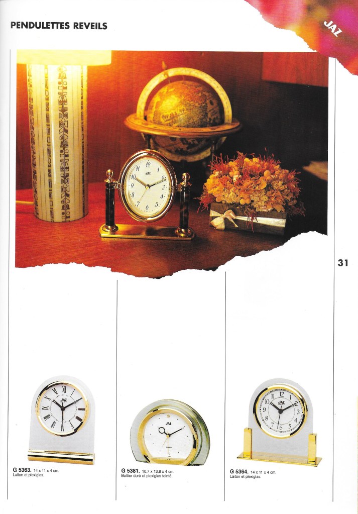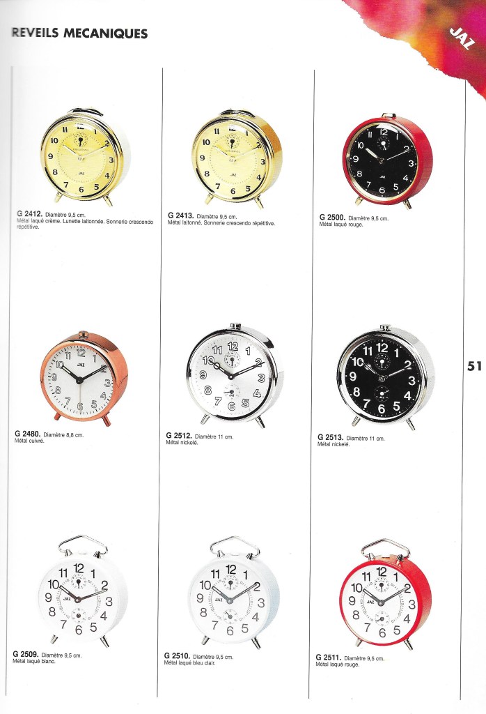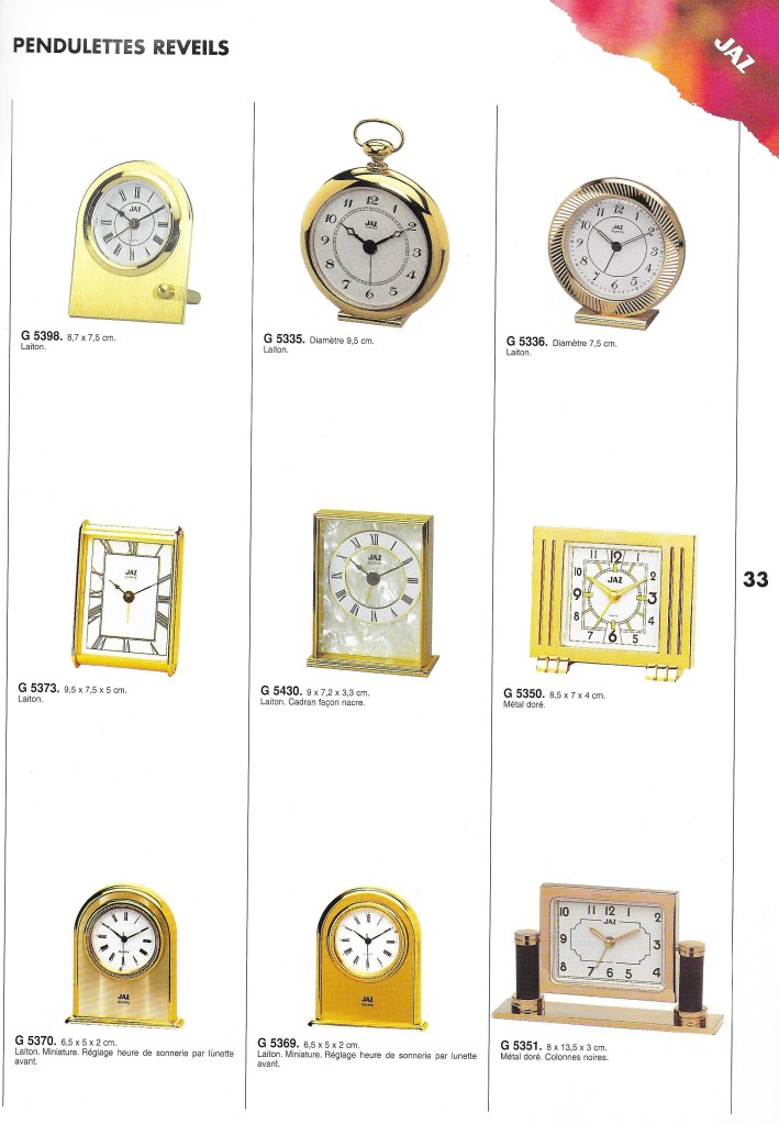 Pour autant , il ne faut pas voir des Jaz à toutes les pages , même si cette pendule en tôle émaillée , référencée H04 dans ce même catalogue 1950/52 , présente une forte analogie avec la GRANIC , seule horloge en tôle émaillée de la marque au jaseur boréal …