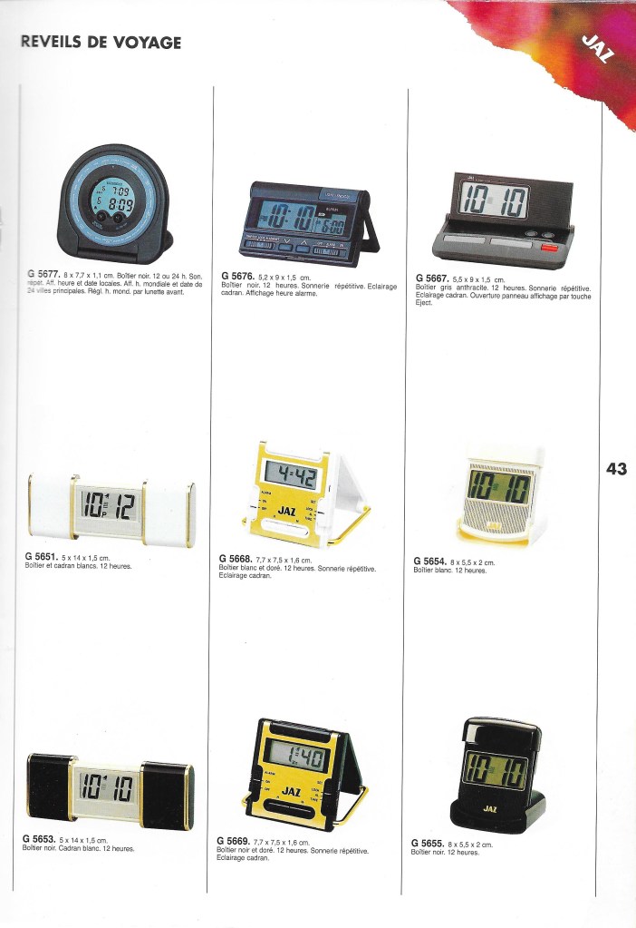 …et pour cause puisque le boîtier est absolument identique : mêmes renflements , strictement le même format et quasiment les mêmes chiffres . La raison est simple : pour un seul modèle d’horloge en tôle émaillée , Jaz n’a pas créé une onéreuse ligne de production spécifique avec four d’émaillage entre 750 et 860 ° . En revanche Jaz s’est fourni à quelques années d’écart auprès du même fabricant que SARDA . Avec toutefois la notable différence que Jaz avait doté sa GRANIC du calibre 5G , qui présente -comme tous les calibres G – l’avantage de se fixer au boîtier uniquement par l’axe central et l’orifice de remontage , contrairement à la version de SARDA dont le calibre nécessite , pour se maintenir , deux vis supplémentaires bien visibles à 3h et 9h .