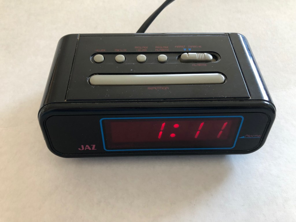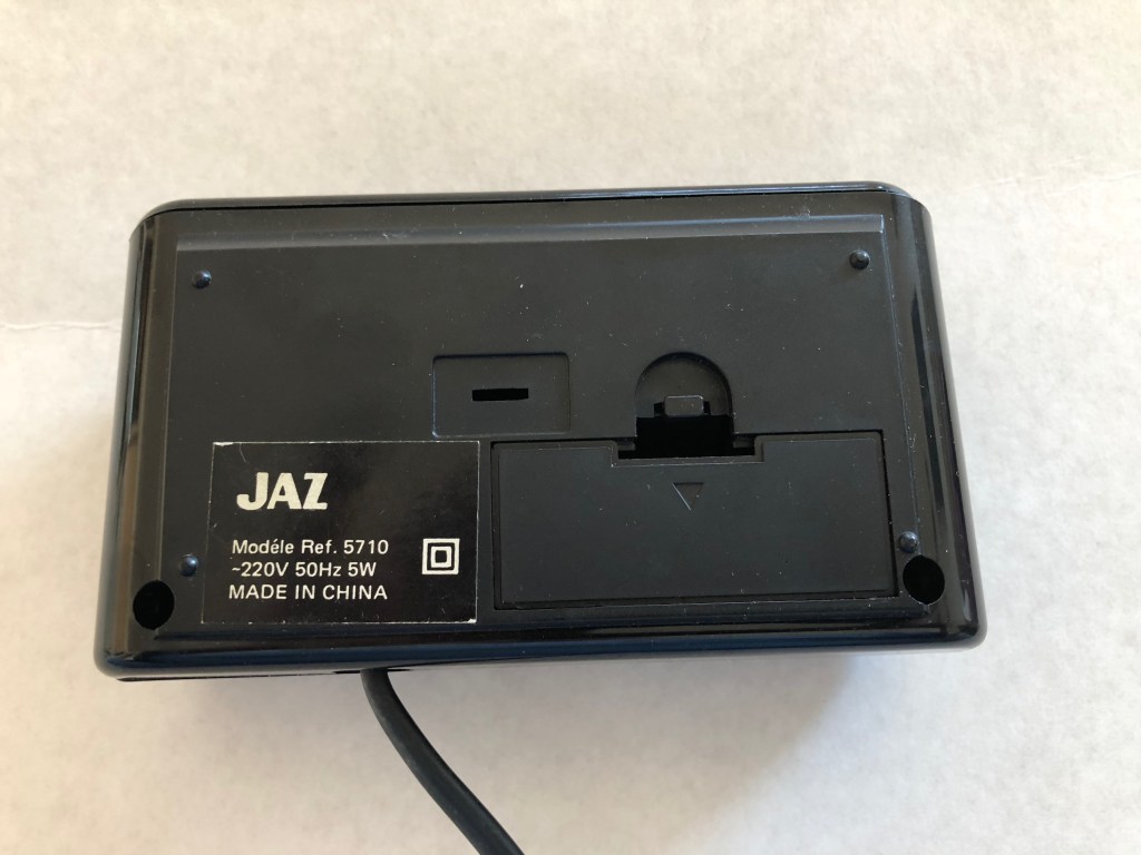 5713 réveil à Led, à répétition de sonnerie , témoin de pile faible, nouveauté du catalogue 1991 page 10 disponible jusqu’en 1994. PileLR9 + sur secteur 220 volts, format poids: 353 gr. Made in China