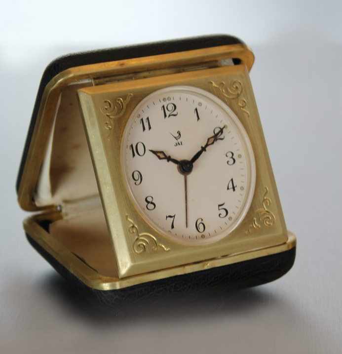 Ils n’auront pas tout à fait tort puisqu’on reconnait les volutes décoratives de la lunette des REISIC, mais le cadran est à chiffres romains et l’on voit le nom d’Europa et non le jaseur boréal : rien d’étonnant à cela puisque Jaz confiait à la firme de Senden la production de ses réveils de voyage, comme la moitié des entreprises horlogères européennes de la deuxième moitié du XX° siècle.