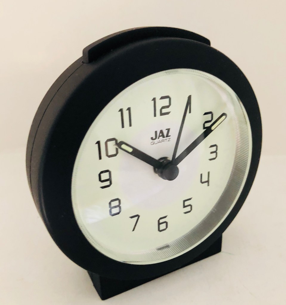 8250 / 8251 / 8252 / 8253 petits réveils quartz à pile LR6, gamme Jaz Club modèle « Baby » Coque de couleur blanche pour la réf: 8250, noir pour la réf: 8251, rouge pour la réf: 8252 et noir + lunette blanche pour la réf: 8253, répétition de sonnerie crescendo , éclairage du cadran en appuyant sur la touche L*SN, trotteuse centrale rouge, aiguilles lumineuses, arrêt de sonnerie au sommet. Dim: 6 x 6,1 x 3,1 cm poids: 54 gr sans la pile.