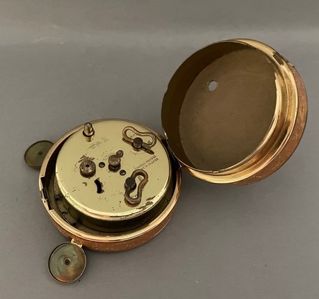 Le nom de CUIRIC avait déjà été attribué en 1946 à une pendulette de luxe . Il est le dernier Jaz de voyage à être habillé de cuir véritable qui est à l’origine de son nom , évidemment . Boîte de CUIRIC ; la référence 1480-71 imprimée au tampon encreur indique cette boîte contenait un CUIRIC cuir naturel . Format 8 x 7,5 x 3,5 cm .
